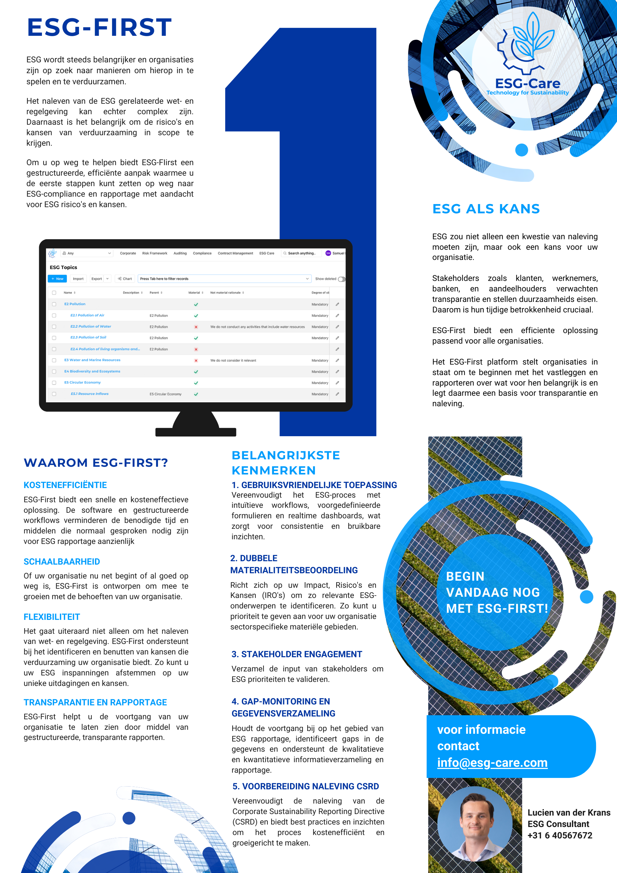 - Kan steunen op inhoud uit ESG - first